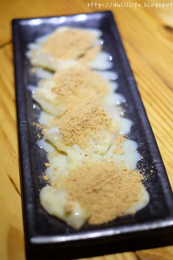 表皮焦香的麻糬,淋大大量煉乳,配上甜而不膩的黃豆粉