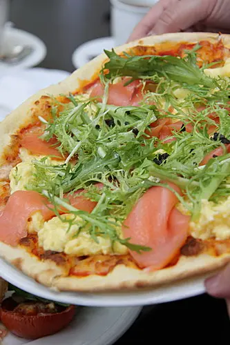 狗媚點的早餐批薩~很好吃喔~~米兒上次沒吃到~這次終於吃到了,但一人分一片也就沒了~
