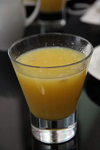 今天送的柳橙汁很新鮮很香甜,但可惜裡頭很多籽~~