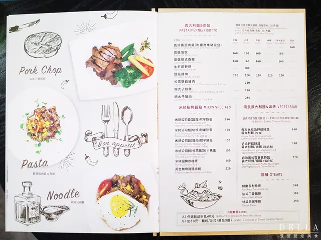 餐點選擇增加很多,除了飲料、甜點、輕食,還有鹹食小點、義大利麵、燉飯、排餐