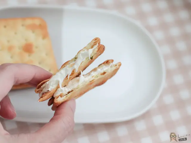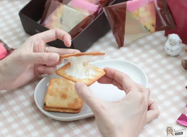 還沒開吃之前先被香氣迷昏,蘇打餅乾相當酥脆,吃起來沒有油膩感,口味上帶點微鹹,會讓你的唾液悄悄分泌,中心的牛軋糖軟Q軟Q,奶香隨著咀嚼散開,從外到內多層次的口感,鹹甜交錯,豐富度很高。