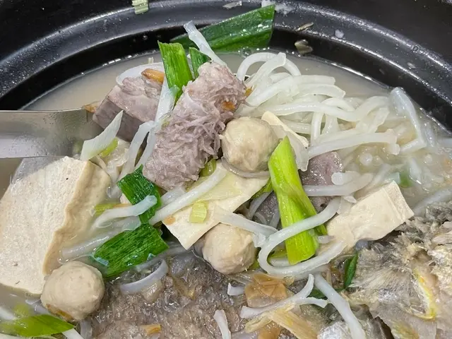 骨頭湯、QQ的米粉、虱目魚丸、芋頭、酥脆的黃魚,用料滿滿~