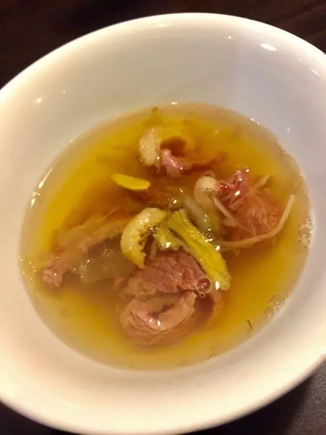 先放牛肉再配合薑絲然後用滾湯嘅湯倒落去。肉質鮮嫩,湯底亦是一個重點。