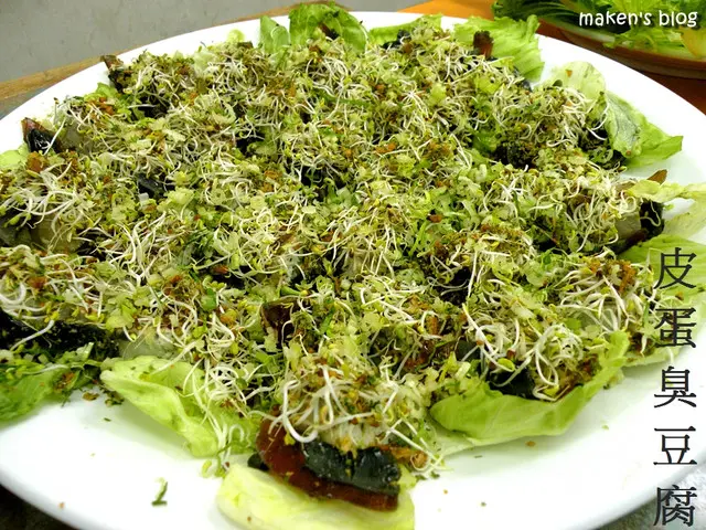 生的臭豆腐和皮蛋還有生菜疊疊楽,一口吃下全部,