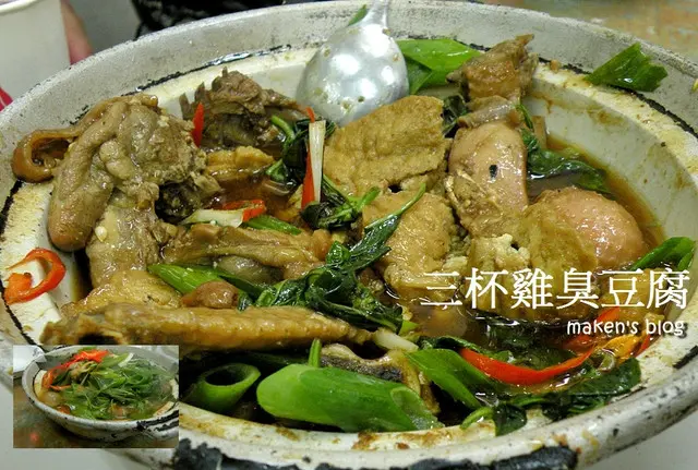 這道三杯雞臭豆腐,雞肉很好吃,雞骨頭很硬,可以證明材料真的很新鮮,臭豆腐這時候吃起來一點都不臭了!!