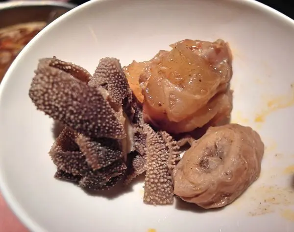 毛肚不好入味,在紅鍋煮一段時間還是像橡皮筋一樣,沒什麼味道