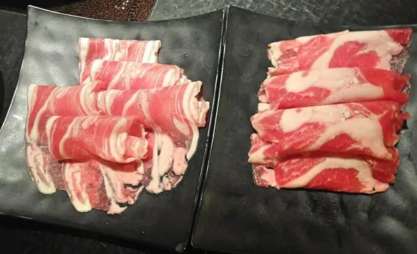 紅鍋辣中帶麻,麻的感受較強,很舒服的麻感!肉類丟入紅鍋很適合,鍋底都是可以續的