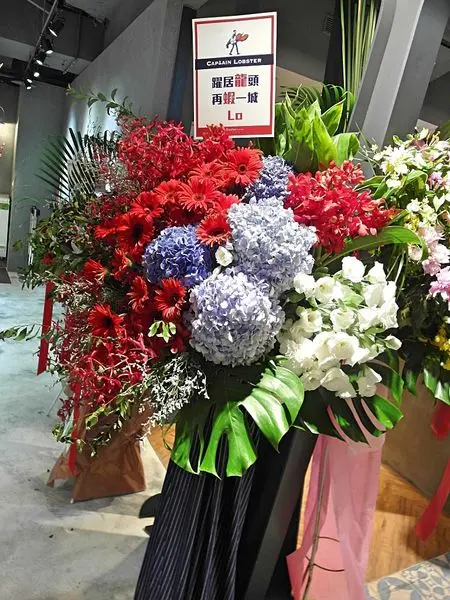 CAPTAIN LOBSTER 前面擺了許多慶祝花籃,格外醒目