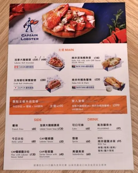 主打的加拿大龍蝦堡也有分 SIZE - M 及 L