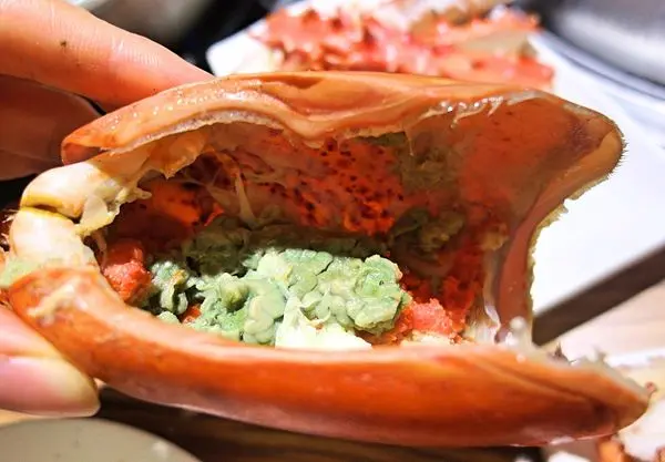 因為女孩很喜歡吃蛋及龍蝦腦(綠色的)
