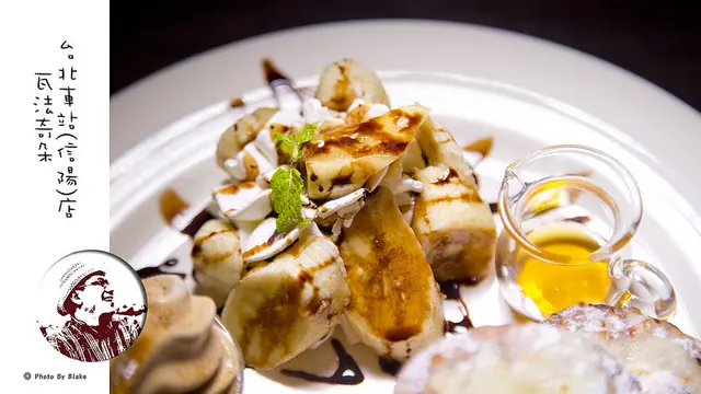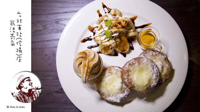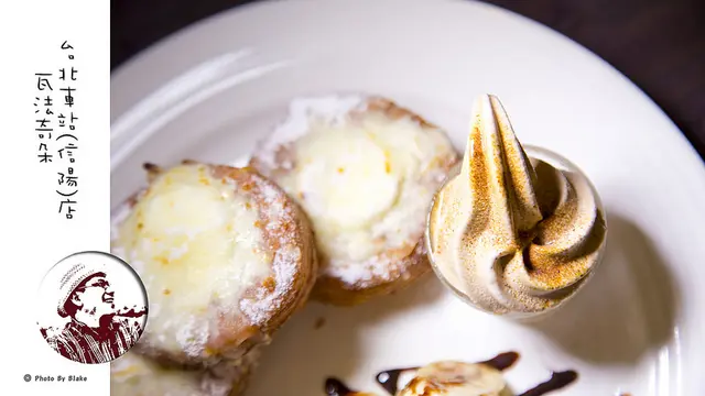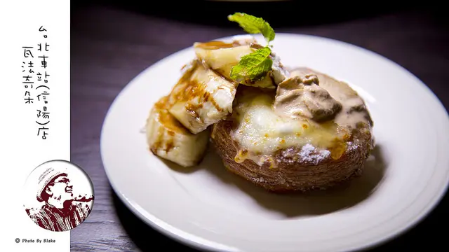 焗烤蜜糖香蕉可頌甜甜圈佐手工奶茶冰淇淋意外的好吃,可頌甜甜圈真的很特別,是瓦法奇朵的特色甜點,外型像是甜甜圈,但內裡的層次就像是可頌麵包,灑上糖粉後,在放上焗烤蜜糖香蕉與手工奶茶冰淇淋,整個就很誘人。