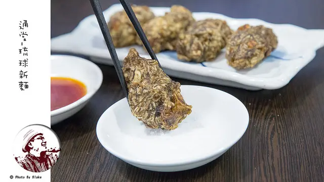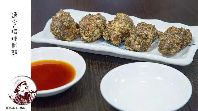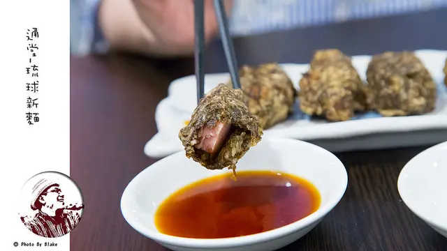 沖繩的水雲又叫褐藻,其實是一種海帶海菜,炸好水雲吃起來軟軟的,沾沖繩海鹽,會有一點甜甜的。餃子醬則是酸鹹感,皮QQ的不錯吃,裡面包的午餐肉也軟軟的,整體還不錯吃。