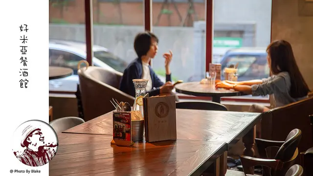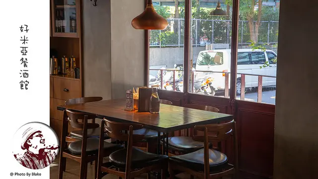 好米亞義法餐酒館位於敦南仁愛圓環巷弄,旁邊就是復興高中,離捷運六號出口只要6分鐘,帶點英式兼工業風的設計,還未走進店內,就能感受到餐廳所散發的文青氣息,大面採光良好的玻璃窗,再加上木質餐桌,店內用餐環境也很舒適。
