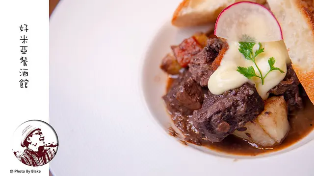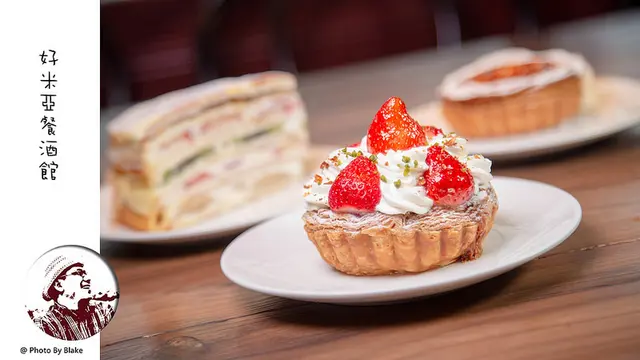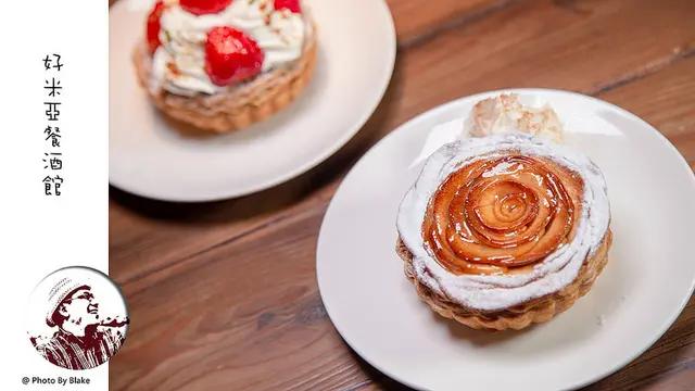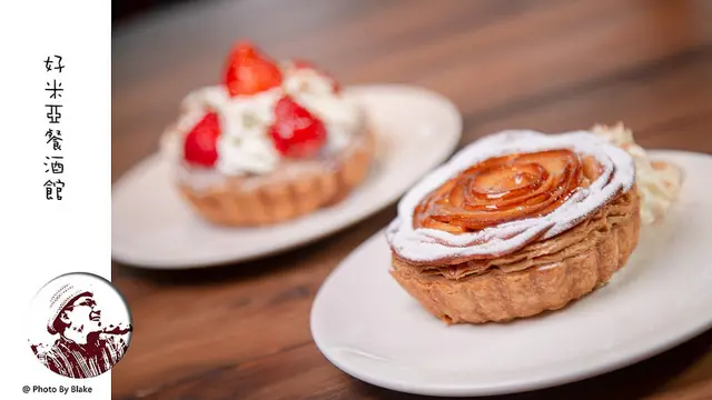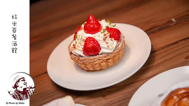 一家好的餐酒館不只要餐厲害,最後的甜點也要強,才能有個不錯的結尾,好米亞的招牌甜點之一草莓葡萄柚派,上面每一顆草莓看起來都好誘人,搭配著鮮奶油,那酸甜帶點柔和,派皮鬆軟吃起來很有口感,真的很好吃。