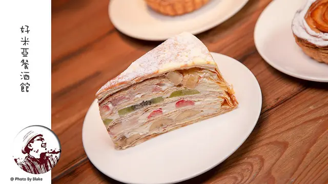 好米亞招牌之二就是這看起來超豐富的水果千層蛋糕,一層蛋皮一層奶油一層水果,吃得到水果與蛋皮在纏繞,奶油內餡一點都不會過膩,反而讓整個層次感更為明顯,每一口的水果風味都不一樣,但這個作工較為複雜,所以採限量提供,晚來的可能就吃不到。