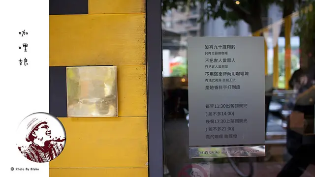 咖哩娘Cari de Madame 在捷運小巨蛋站走路過來約末10分鐘左右路程,還好每次與醫生見完面後,大概都在12點前到店內,這時的客人是有,但還沒有多到滿出來的程度,營業時間是從1130開始到下午1400,餐間有休息,晚上從1730賣到晚上2100,有可能賣完提前打烊喔!