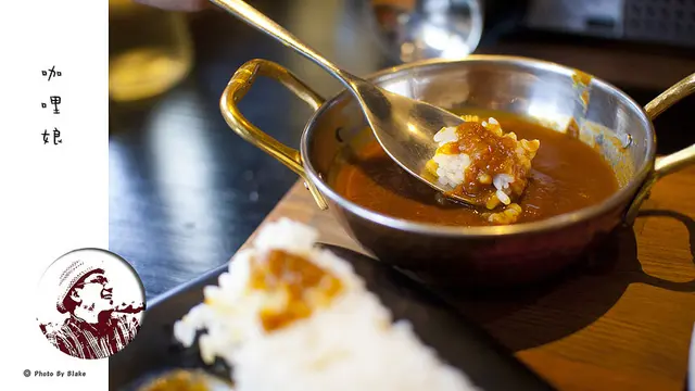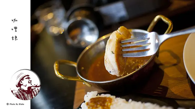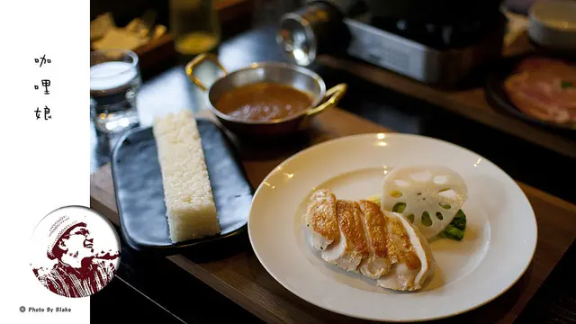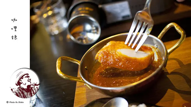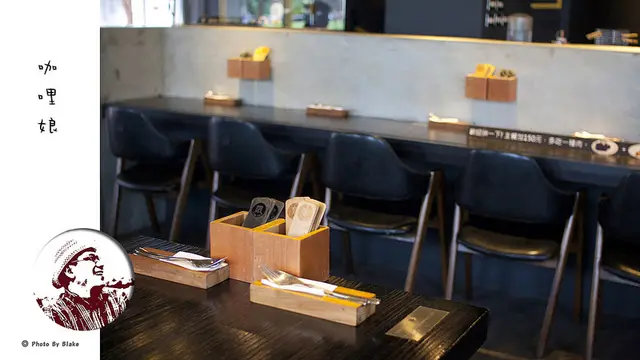 店內的裝璜走的是簡約時尚,不上色的裸牆配上沉穩的深色皮椅,再搭配大量透光的玻璃窗,有一種日系空氣感,咖哩娘Cari de Madame的咖哩本身也是比較像是日式口味,味道走的是溫潤,不是一般現成的咖哩粉或咖哩塊,而是多種香料手打自製咖哩,最後再與雞骨和蔬菜高湯一同燉煮,據說咖哩娘是鬍子餐酒餐飲集團的新品牌,但布雷克倒是沒吃過鬍子餐酒。