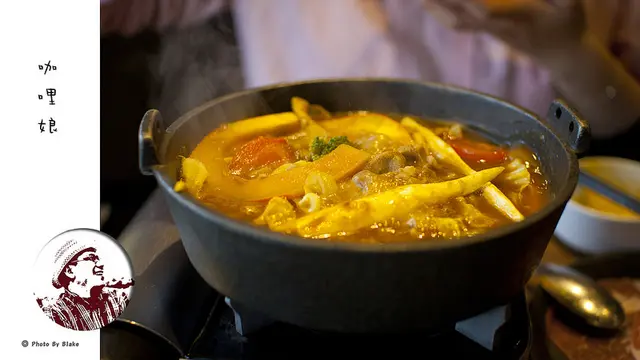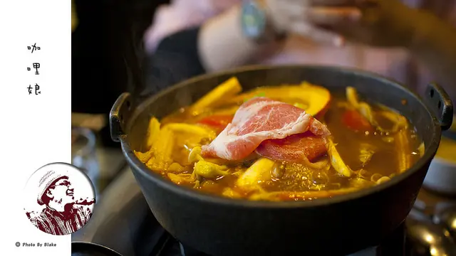 蔬菜煮熟後,吃起帶有些許的咖哩風味,但本身的清甜卻也能吃得出來,有種互不打擾的清爽。豬肉片煮熟,味道上也是淡淡的咖哩味,口感上較為軟嫩一些,後來布雷克將一些湯汁淋在白米飯上,感覺淡了些,還是回頭沾上原本的咖哩醬。