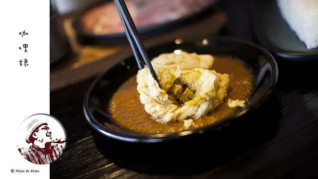 咖哩餃跟外面常見的不太一樣,咖哩餃是與其他烘焙坊合作,兩顆咖哩餃躺在咖哩醬汁裡,咖哩餃皮吃起來就是酥鬆脆,筷子一下去就輕而易舉的夾破,內餡咖哩味道屬於溫和,沒有啥辣度與香料過種的感覺,如果覺得太過清淡,建議多沾點盤中的咖哩醬汁,看你要吃重點就沾多點,可是依然還是沒有想像中那麼重口味。