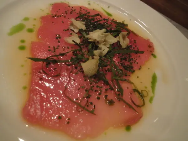生鮭魚片和義式油醋醬的搭配也非常合~ ^^