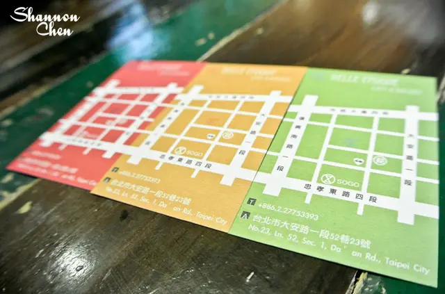 店家很用心的印了三種一模一樣的名片,只差在不同的顏色