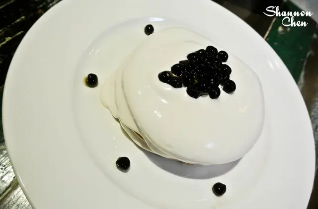 說真的我蠻喜歡這個鬆餅,吃起來有綿密且充滿了紅茶的香氣,不僅是鮮奶油搭紅茶鬆餅變成奶茶的厲害結合,加上了珍珠更成了