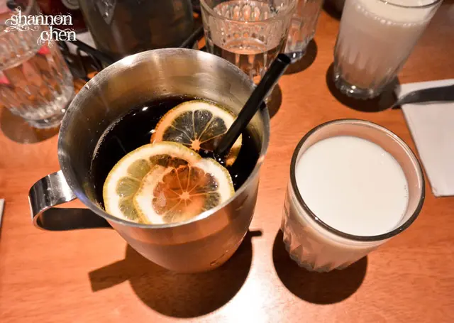 我一就如往常的紅茶加上檸檬片,還有早午餐附的牛奶(終於不是牧草汁)