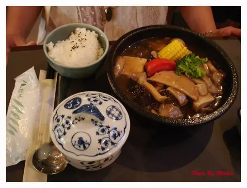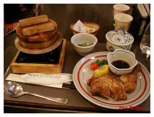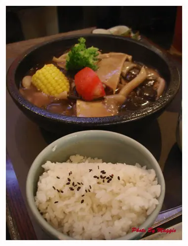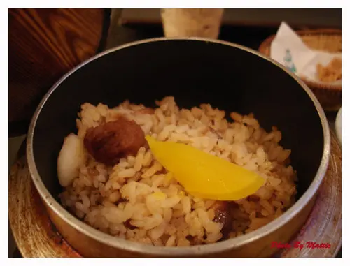 釜燒飯是用了特殊的醬汁下去燉煮味道很好上面還有一顆梅子增添風味