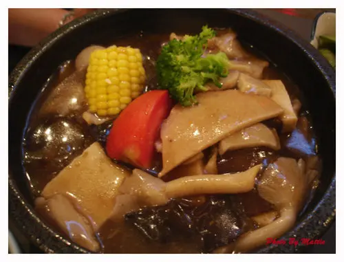 羅漢什錦燒的內容是用鮮菇素料加上滑嫩豆腐由主廚特調的高湯熬煮而成
