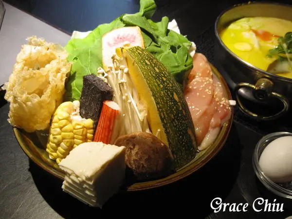 這天我們三人是以吃正餐為主,點了干貝油蔥豬排茶麵(340元)/三杯雞風味餐(390元)/南瓜牛奶雞鍋(480元)/黃金炸豆腐(70元),需外加一成服務費.