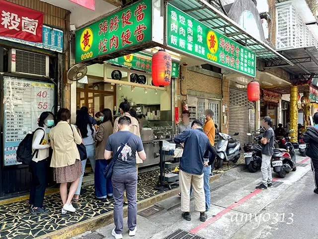 兩人到『黃記滷肉飯』門口時真的有點吃驚,已經下午一點多了,門口還有好多人在排隊,不論是等著內用或外帶的客人都很多,還好沒有久等,大概10分鐘左右就有位子了。