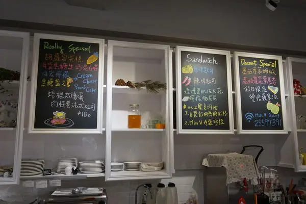 櫃檯旁用各色粉筆寫上今天的特色餐點和菜單,露西很愛這種手寫風格~