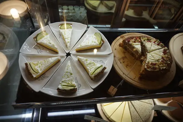 今天蛋糕櫃供應有墨西哥萊姆派、胡蘿蔔蛋糕、奶油起司布朗尼。
