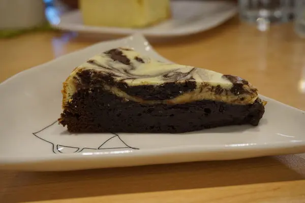甜點寶寶露西在一番掙扎後,點了這片奶油起司布朗尼(+飲料$200)。