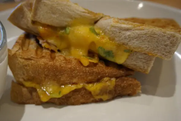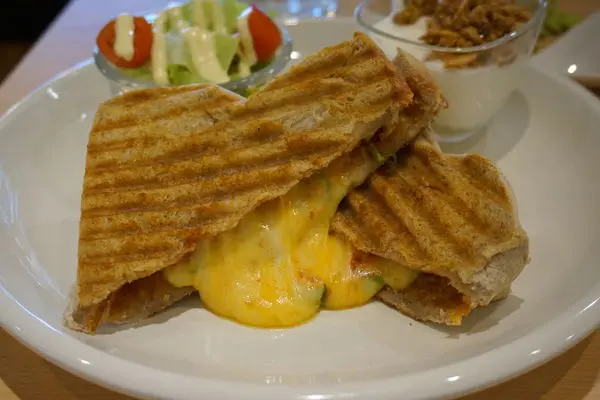 回過神來繼續細看這辣味起士三明治,店家使用的是自製的手工全麥麵包。