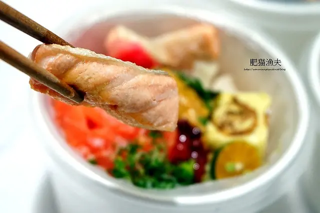 雖然丼飯是現做好没多久便立刻外送,但香Q的醋飯和生魚片還是分開放為佳,