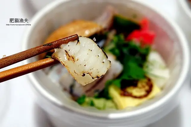 一打開炙燒海鮮丼,可以看到個人超愛的比目魚鰭邊肉,不用什麼咬便入口即化!