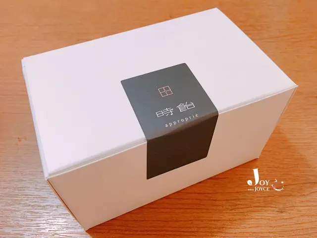 白色盒子上的品牌貼紙,沒有複雜的裝飾,看起來特別典雅耐看