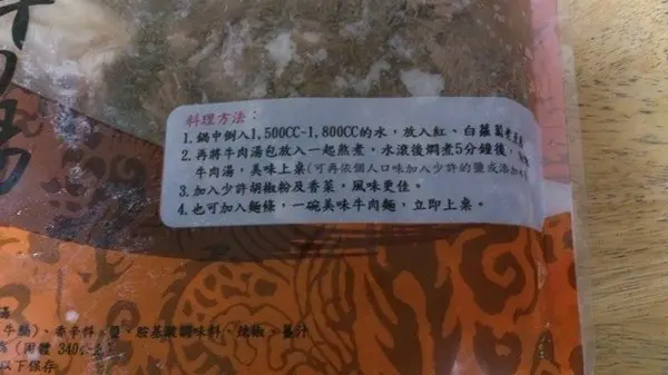 背面有料理方法,簡單又很讓人明瞭,可以直接當湯飲用,也可以加入麵條做成牛肉麵,經濟實惠耶~