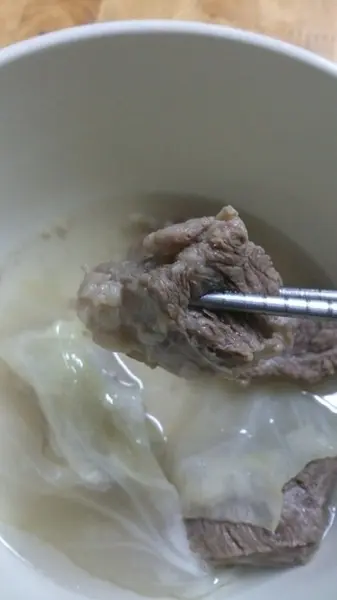 牛肉湯是清燉的,整包看起來份量不少,一定要加水稀釋,因為這一整包都是濃縮的精華。