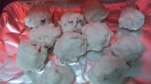 我們家沒有油炸,所以我用烤箱烤,每顆花枝丸都看得到花枝耶,真的很真材實料啊!