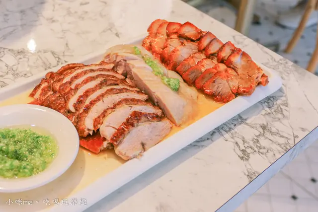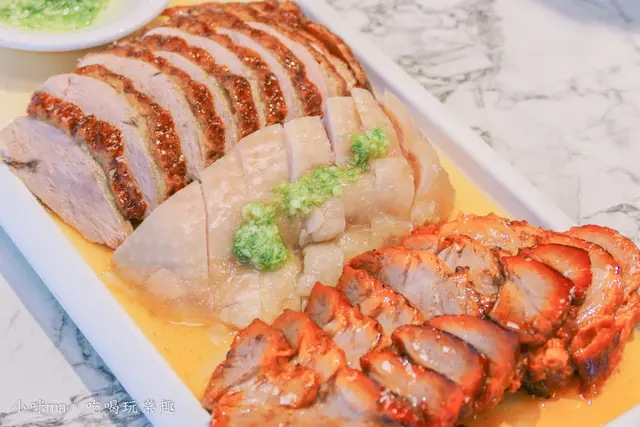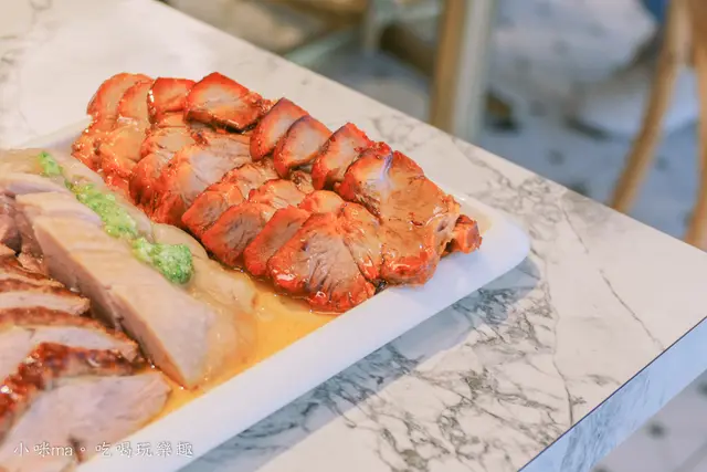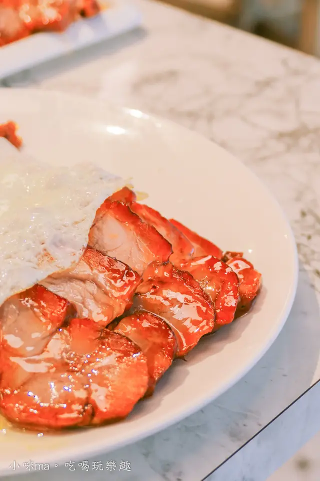 我們選了薑蔥油雞、大哥樑叉燒、明爐烤鴨,每一種看起來都很好吃,叉燒肉用獨門工法製成,淋上甜甜醬汁,三款都是店內招牌