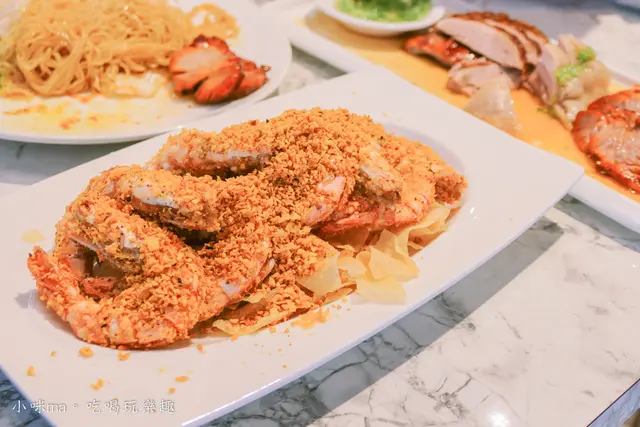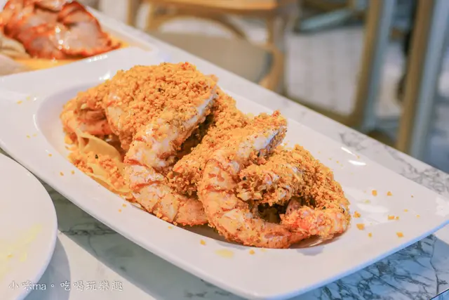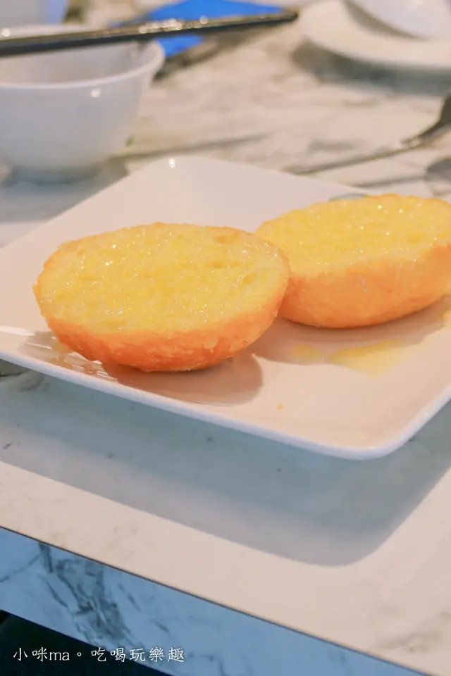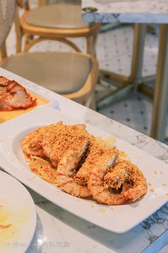 底下用了炸腐皮(?)襯底,吃起來像是餅乾的口感,蝦子肉質厚實Q彈,蒜酥增添香氣,這一道也太涮嘴了,單價高了點卻還蠻值得的