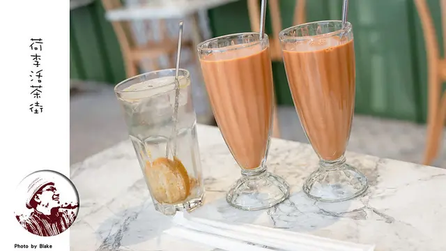 《荷李活茶街》的港奶苦味比較沒有那麼明顯,喝起來不會那麼苦澀,是比較溫順一些的,奶味跟茶香是並重的;要苦一些就選比翼鴛鴦,就是香港常見的奶茶加咖啡,味道會更重一些,苦味也會比較明顯;招牌鹹檸七真的是招牌,《荷李活茶街》的鹹檸檬是自己醃的,跟七喜還蠻合拍的,沒有互搶風味,也是不錯喝。