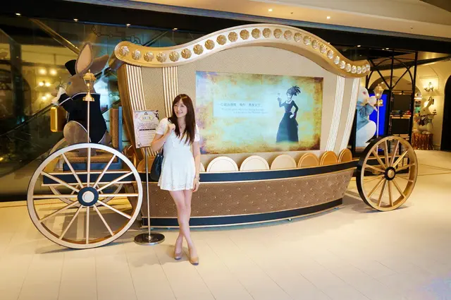 甜點王國入口有一台吸晴黃金馬車, 這是代表白晝王國白兔廚師召集人. 對了, 大家如果想人少比較好拍, 按小米兩次來甜點王國經驗, 早上11點剛開門是最好拍的時候, 中午過後人就變多囉.