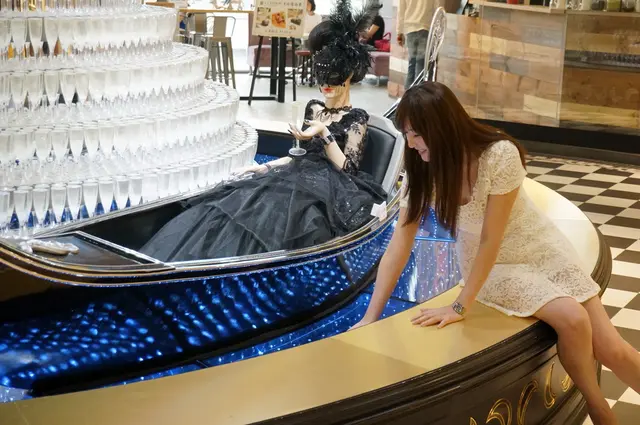 整個甜點王國分兩半, 一半就是以黑色主題的裝潢, 高貴中帶著神秘感. 黑夜女王這場景有像澳門威尼斯呢