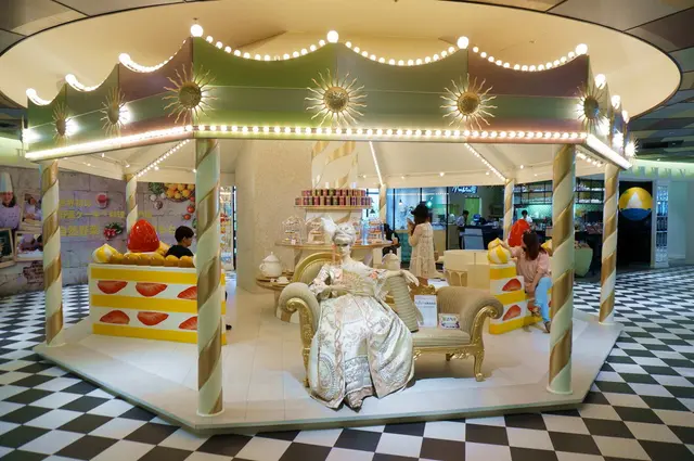 這個繽紛蛋糕旋轉塔是不是很吸晴呢? 有夢幻蛋糕椅, 還有那個那個人見人可愛的咖啡杯椅, 這裡可是白晝女王的地頭啊, 快來拜碼頭一下吧 還有中間蛋糕塔每30分鐘整點就會旋轉和發出音樂, 大家不要忘記來看~