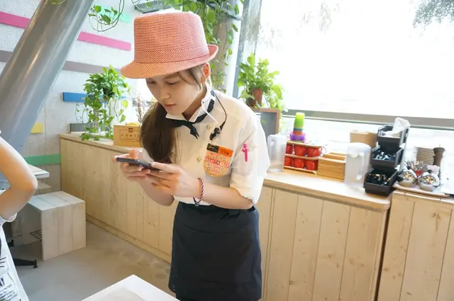 店員在滑手機? 沒有啦~ 他們點餐是現代化, 使用APP來點餐, 客人點餐完畢後廚房立即收單製作, 省去紙本作業時間及環保~