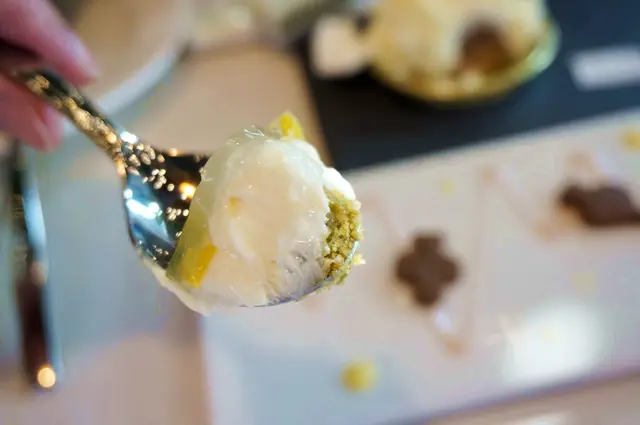 小米建議每一口都挖到全部一起吃, 有碎餅乾爽脆/乳酪濃郁/寒天+酪梨片酸甜等不同層次口感唷 果然是他們的招牌~ 是小米推薦必點甜點!