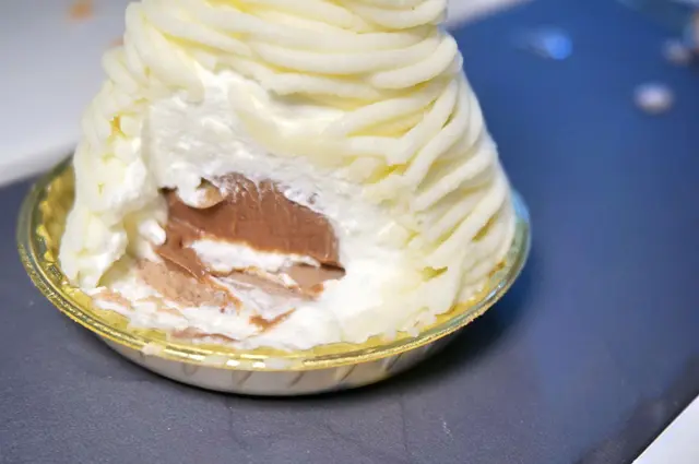 有一點淺黃雪白馬鈴薯泥吃起來很滑順但不甜膩, 裡面則有著粟子香, 再加上巧克力碎片脆脆口感, 有3個不同層次感受呢~